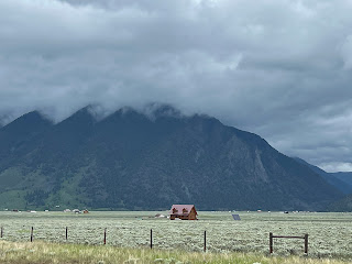 After our waterfall adventure, we headed back north moving to join with highways headed towards Montana. Dick drove through some torrential storms, and then Patti took her turn driving.